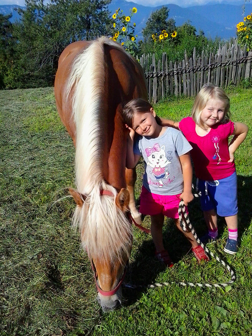 Erlebnis pur... auf dem Rücken vom "Pferd" zu sitzen... sich tragen lassen. Ihr dürft auch mal schmutzig werden, schließlich warten tägliche Stallarbeiten auf euch! Alle Herzen der Kinder schlagen höher, wenn das Lagerfeuer angezündet wird, das die Kinder mit viel Geduld und Anstrengung vorbereitet haben. Dann werden Würste gebraten und Stockbrot vorbereitet...und auch mal Hexentänze aufgeführt. Gerne können die Kinder Fahrräder und Spieltraktoren benützen. Auf der Spielwiese gibt es eine Sandkiste, Schaukeln, Kletterseile, Trampolin, Trettraktoren, Go-Cart. Für die Größeren gibt es ein Tischfußball, Tischtennis, Einräder, Jonglierbälle. …nun kann der Urlaub für die Eltern beginnen, weil sich die Kinder richtig wohlfühlen.